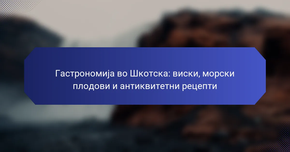 Шкотската гастрономија се карактеризира со локални состојки, богати кулинарски традиции и емблематични јадења. Морските плодови, како што се школките и остриците, се суштински, исто како и виски, познат по својот квалитет. Древните рецепти, како што е хагис, сведочат за уникатно културно наследство. Оваа кујна ја истакнува силната арома и традиционалните методи на подготовка, создавајќи автентично гастрономско искуство.