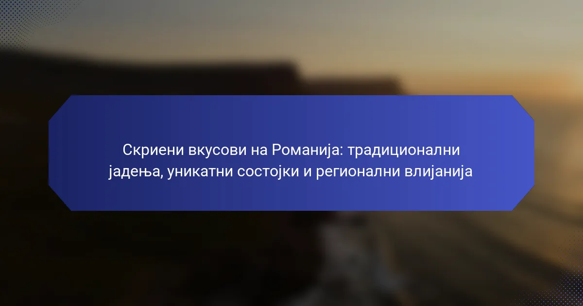 Романската кујна се истакнува по своите традиционални вкусни јадења, уникатни состојки и разновидни културни влијанија. Откријте емблематични јадења како што се сармалите и мамалигата, како и локални состојки како што е сирењето од овци. Истражете како традициите на Балканот и Австро-Унгарската империја ја обогатуваат оваа гастрономија. На крај, запознајте се со помалку познатите деликатеси кои вреди да се вкусат.